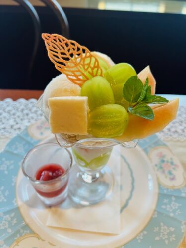 いよいよ桃もシーズン終盤を迎え、 今週から晩夏の品種”幸茜”になりました。 いよいよ旬を迎えたシャインマスカットとの贅沢なコラボパフェは 9月中旬ころまでの予定です。 (桃の入荷が終わり次第ブドウパフェに切り替わります) ランチ、ディナータイムもパフェのみのご利用もO.K コースにご追加も承ります。 ぜひ今のうちにお召し上がりくださいね。